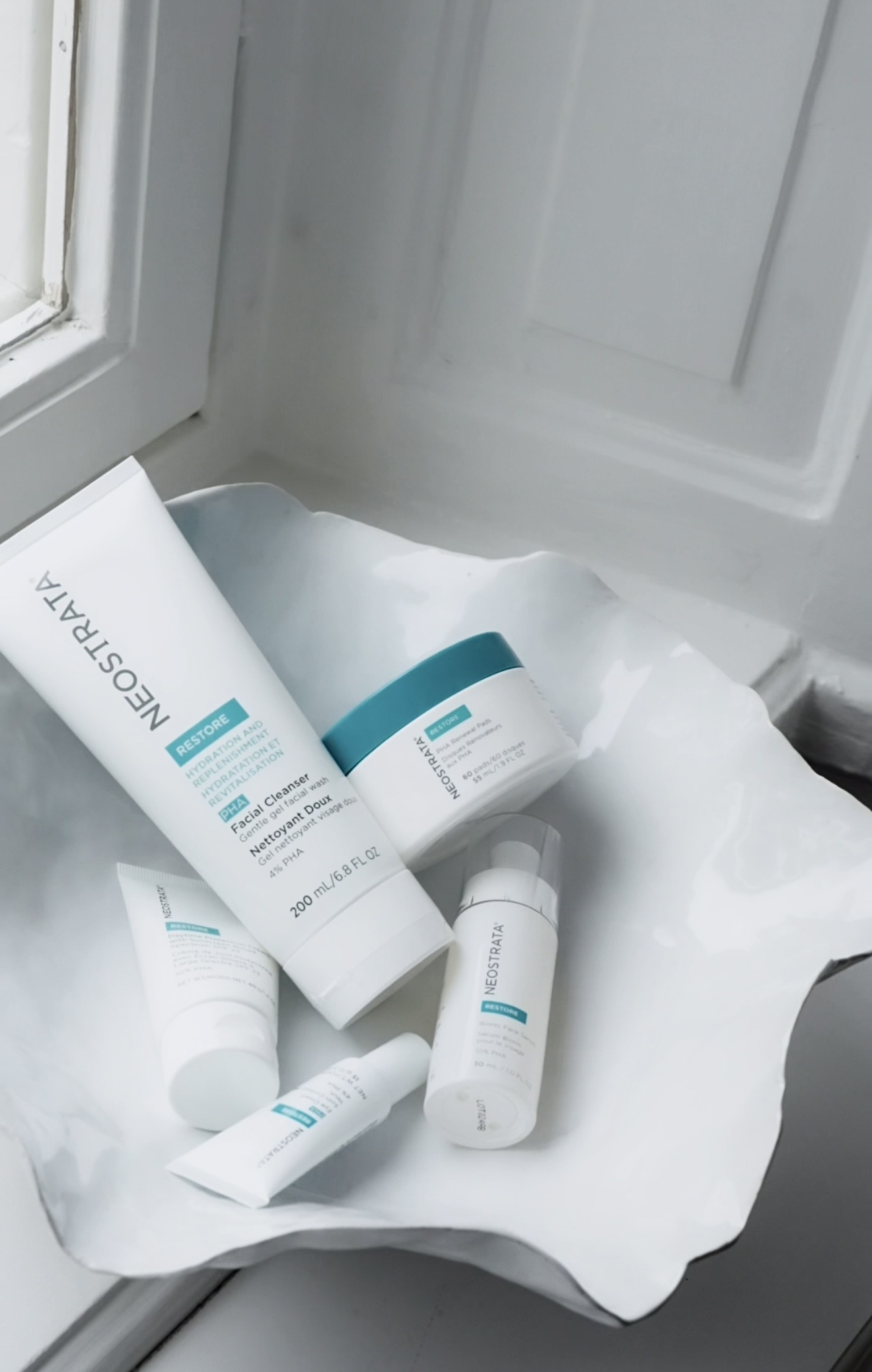 – Min skönhetsrutin har i många år stavats NEOSTRATA och bygger i grunden på deras Restore-serie, som är särskilt framtagen för torr, känslig, stressad hud eller hud med en försvagad barriär. Alla produkter i serien innehåller deras patenterade PHA (polyhydroxisyror) – en mycket mild men effektiv syra som exfolierar varsamt genom att lösa upp och avlägsna döda hudceller från ytan utan att irritera huden samtidigt som nya friska celler bildas.